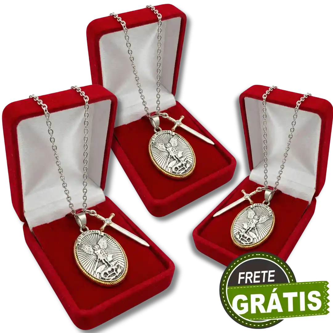O Colar de São Miguel é uma joia religiosa dedicada ao Arcanjo São Miguel, conhecido como protetor e guerreiro nas tradições cristãs. É um símbolo de fé e proteção.